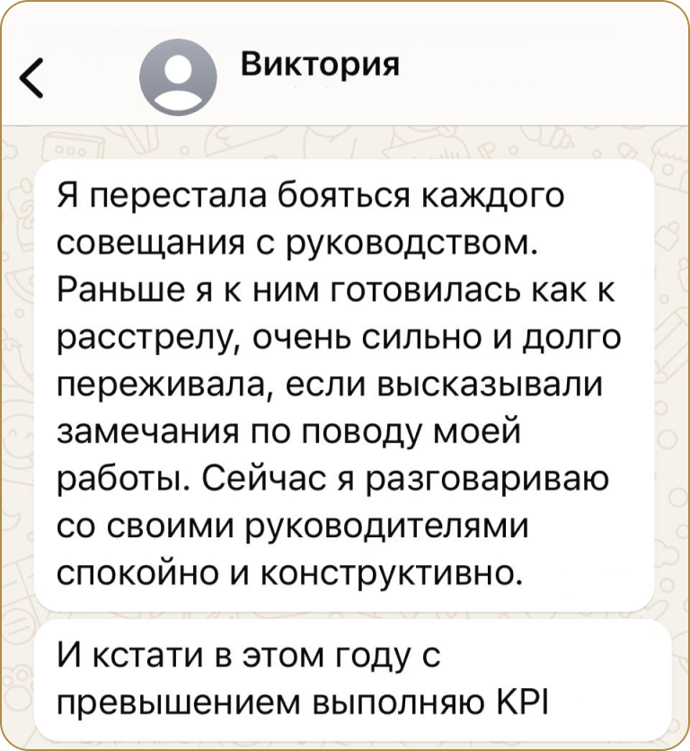 Поймешь настоящие причины твоего стресса и сможешь удерживать его на безопасном для себя уровне с помощью навыков мышления и эмоциональной саморегуляции.